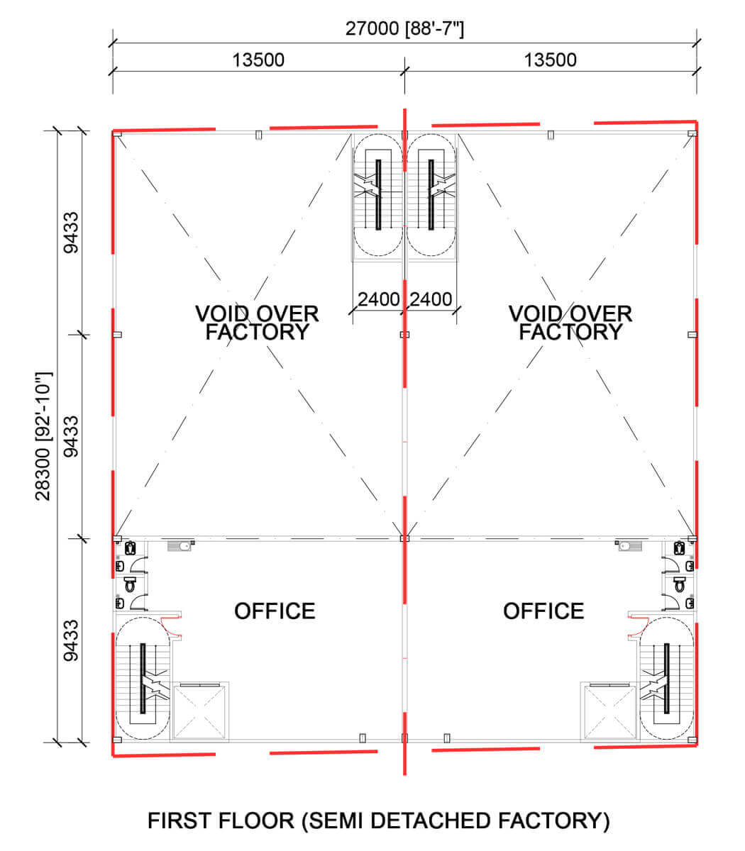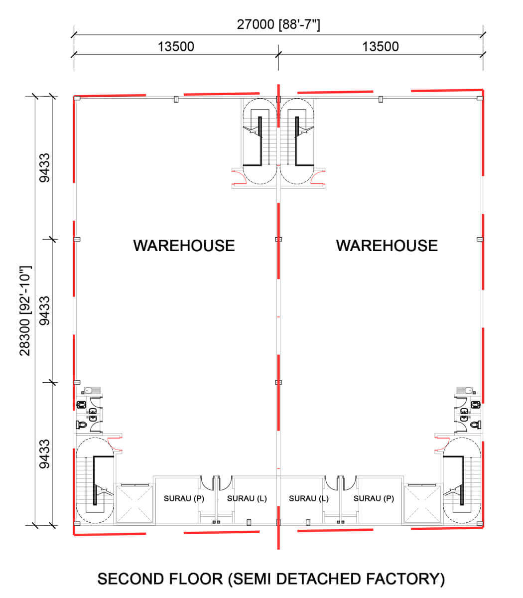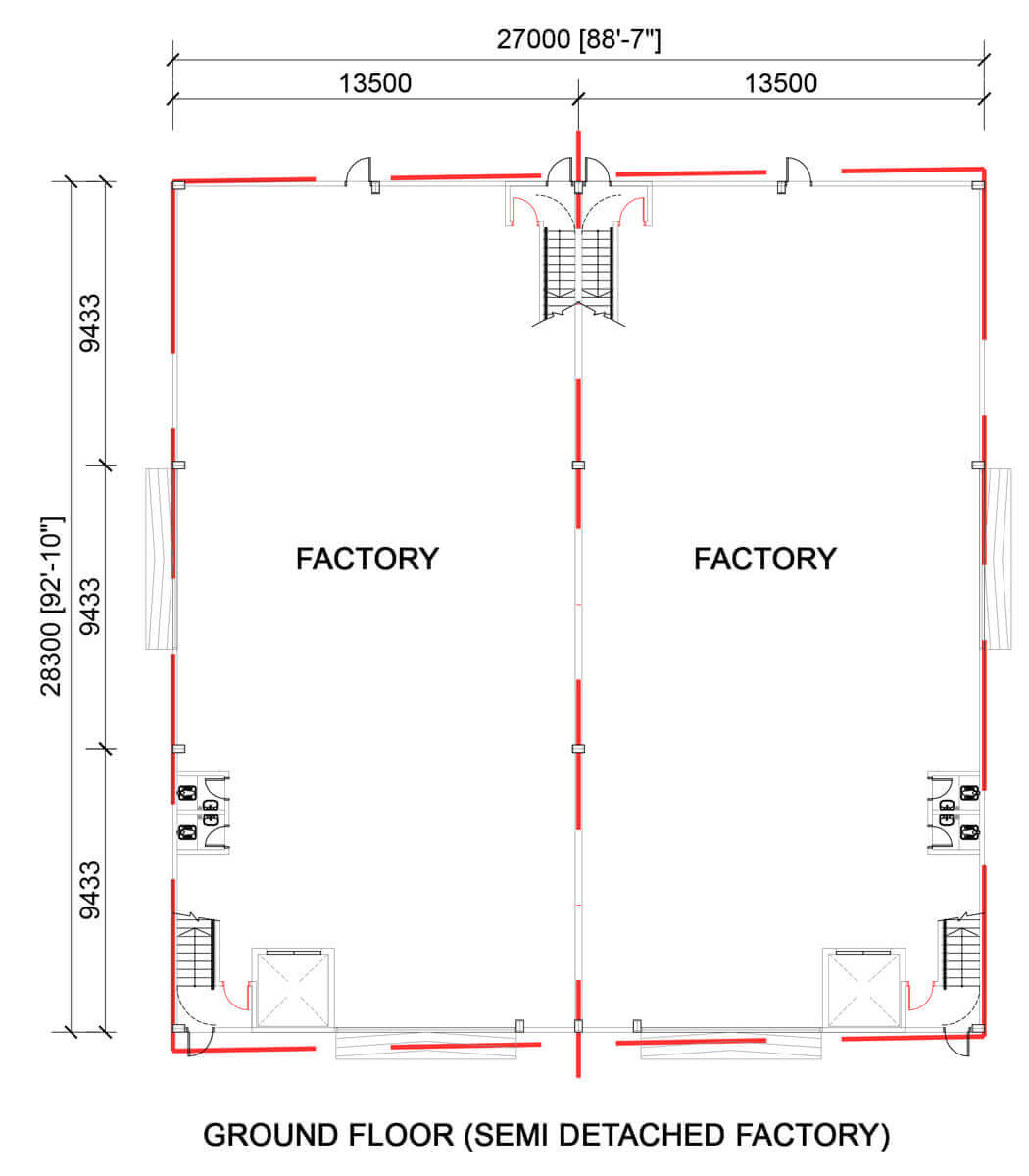• Ground floor loading : 2 ton/m², Second floor loading : 1 ton/m²